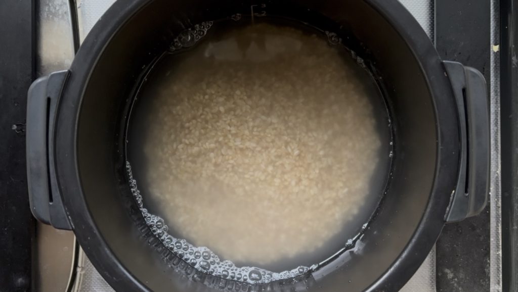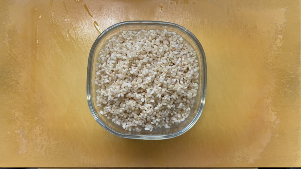 玄米は20分ほど水に浸してから水気を切る