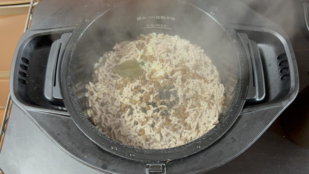 炊き上がりに広がるローリエとブラックペッパーの香りが食欲を刺激します。豆と穀物の素朴な香りに、スパイスの余韻が心地よく重なります。