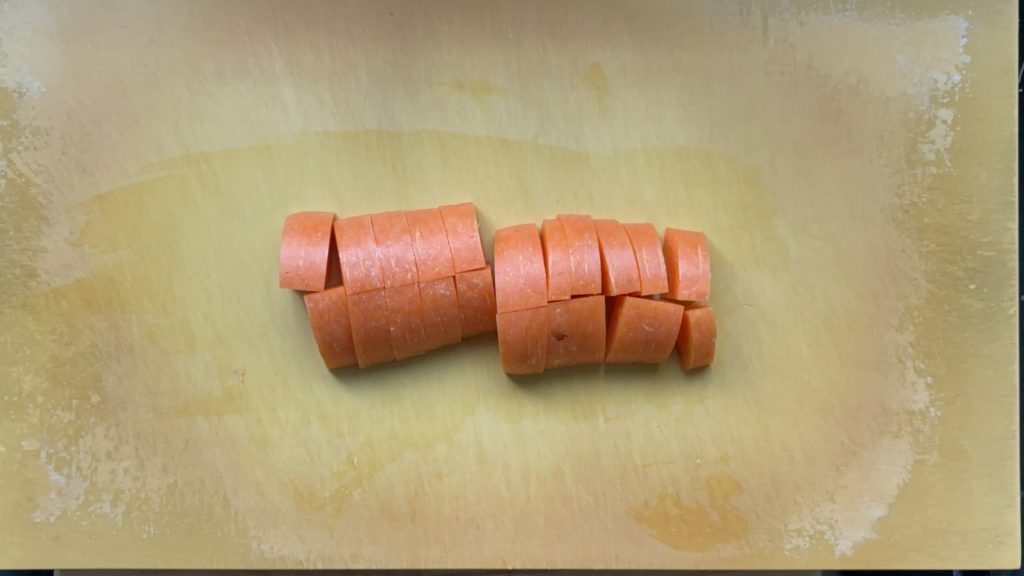 にんじんは1cm幅のいちょう切りにする