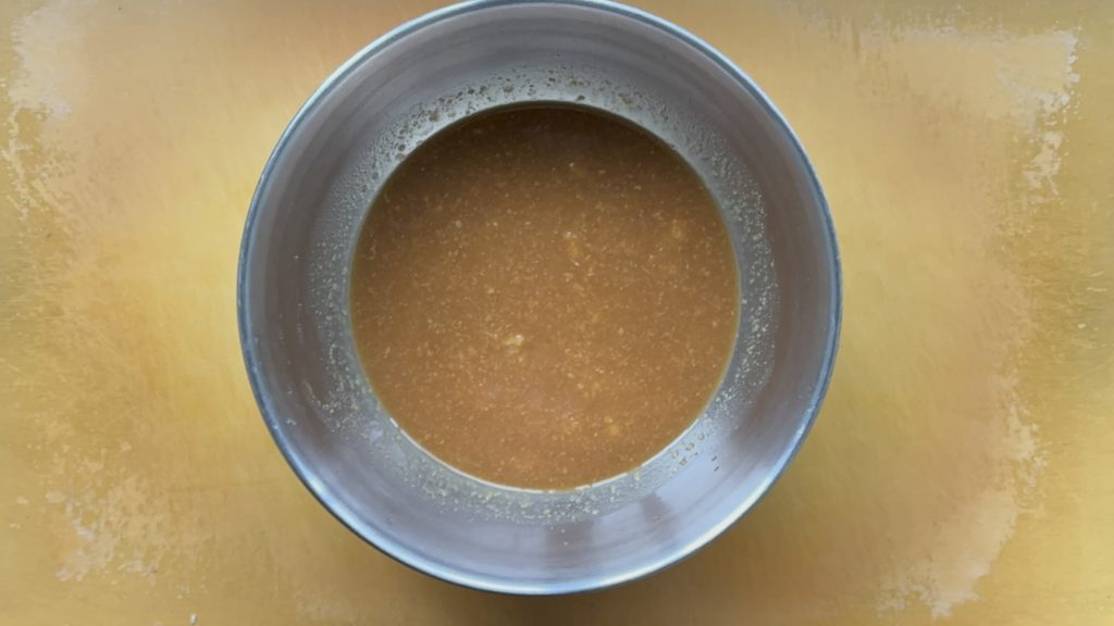 ボウルに味噌、酒、みりん、しょうゆ、にんにくを入れ、混ぜ合わせ、合わせ調味料を作る