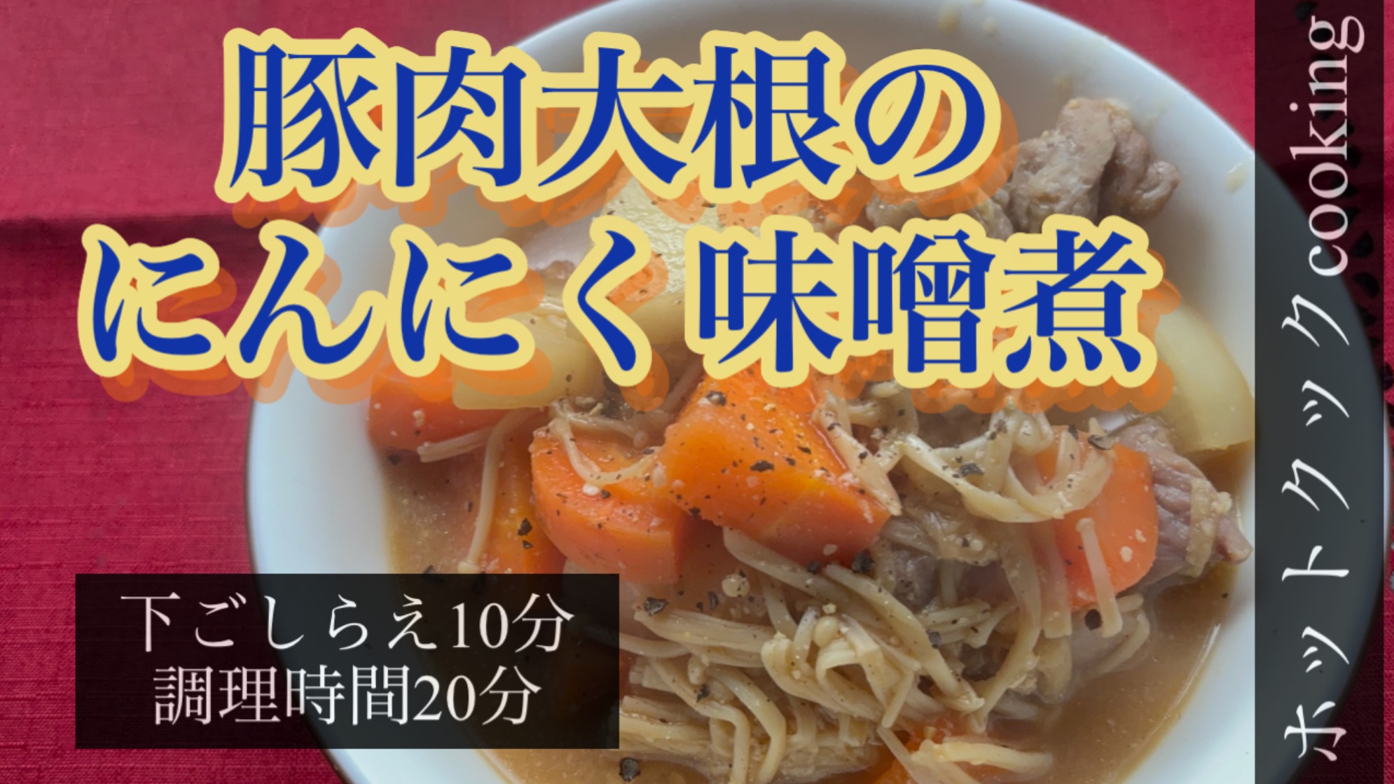 「豚肉大根のにんにく味噌煮」は、味噌のコクとにんにくの風味がしっかり楽しめる満足感のある煮物です。ホットクックにおまかせで味がしみ込み、忙しい日にも手軽に作れます。ごはんとの相性も抜群で、家庭の定番おかずとして活躍する一品です。