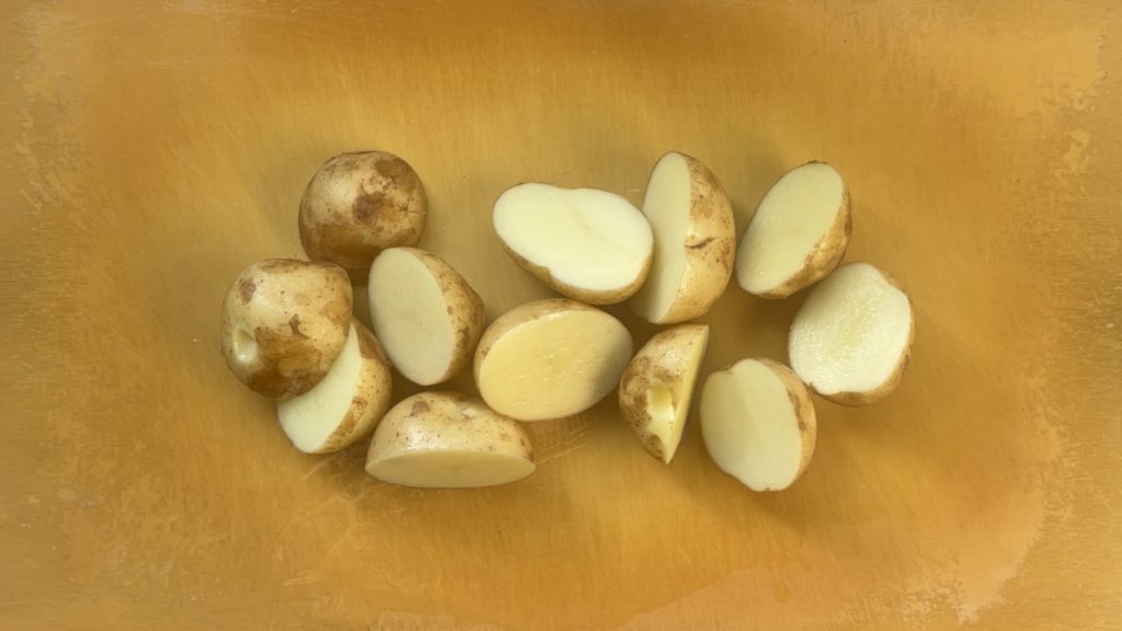 新じゃがいもは半分に切る