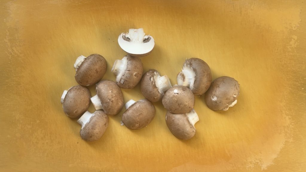 マッシュルームは半分に切る